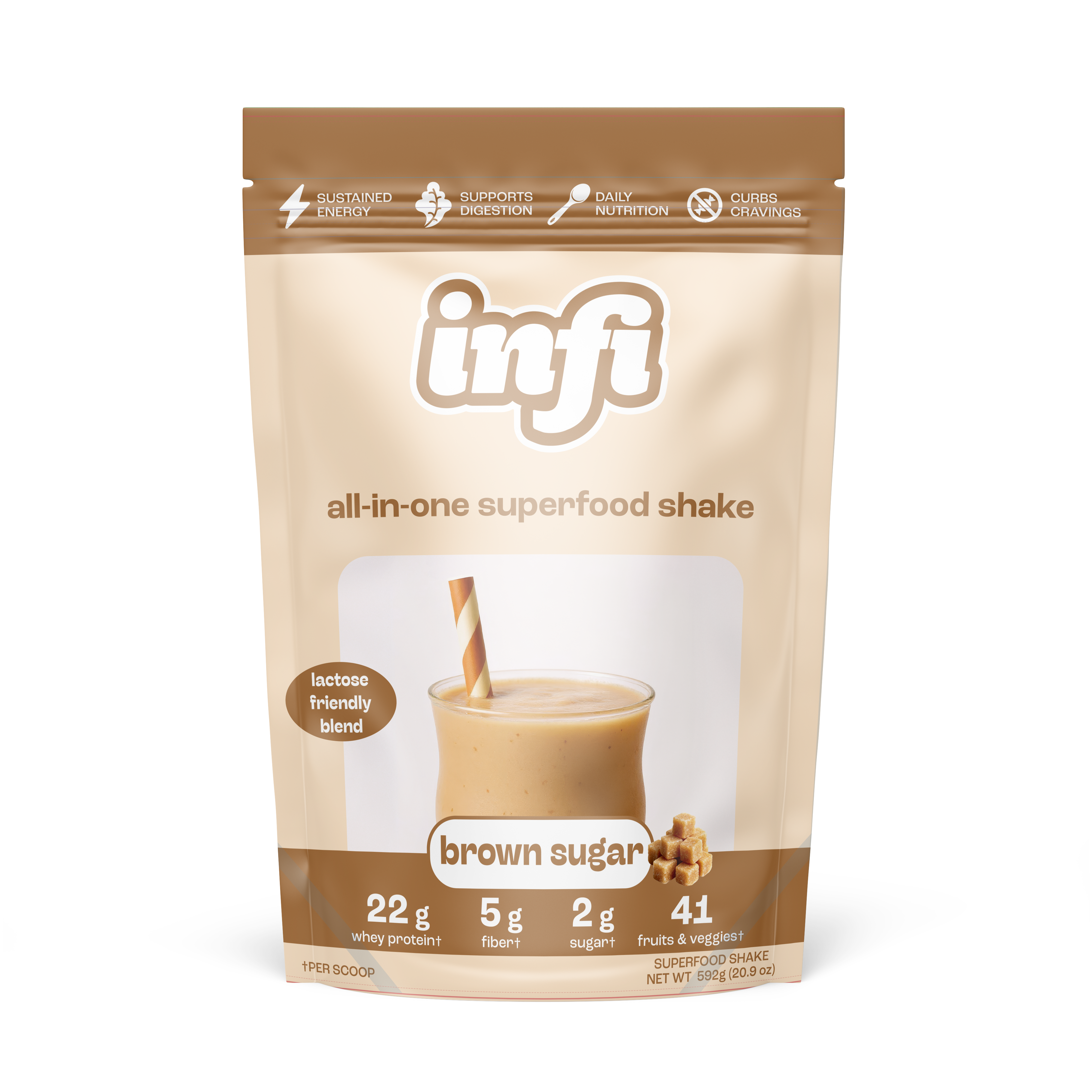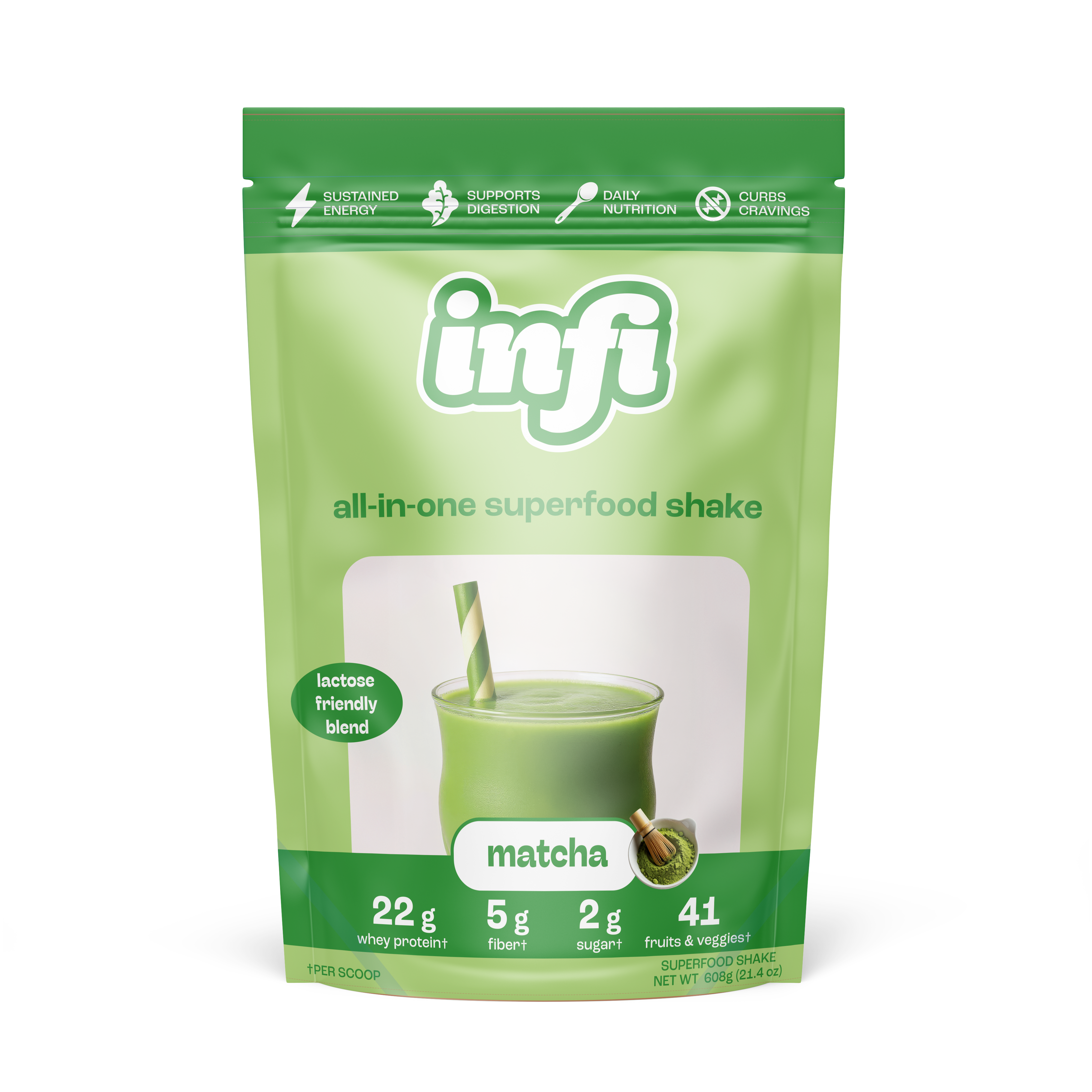 Protein is the base but it should not stand alone. Infi combines 22g of whey protein with fiber, fruits veggies and digestion support so your shake actually feels complete